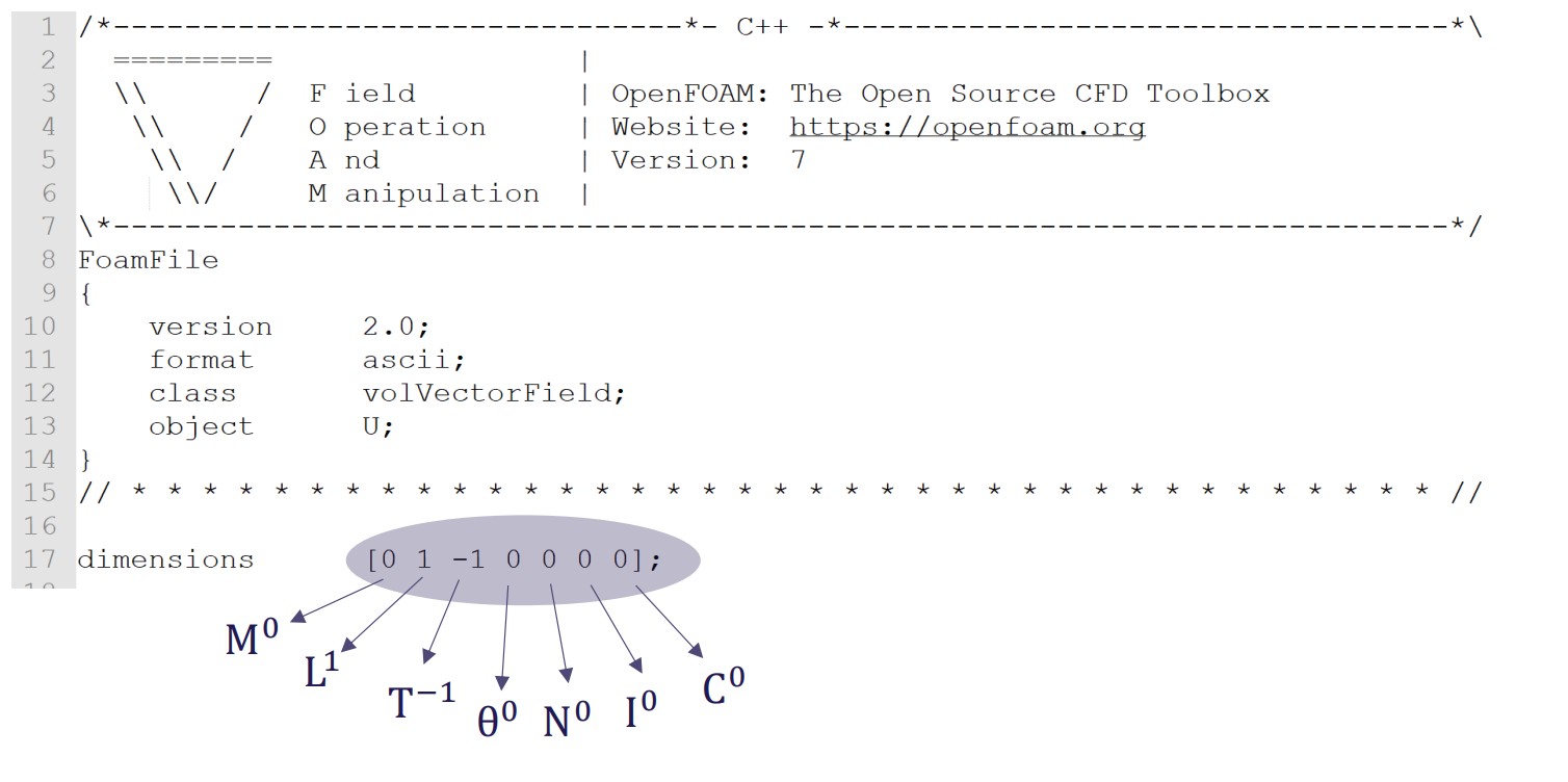 Dimensions in OpenFOAM are defined in terms of the MLT system (here velocity)