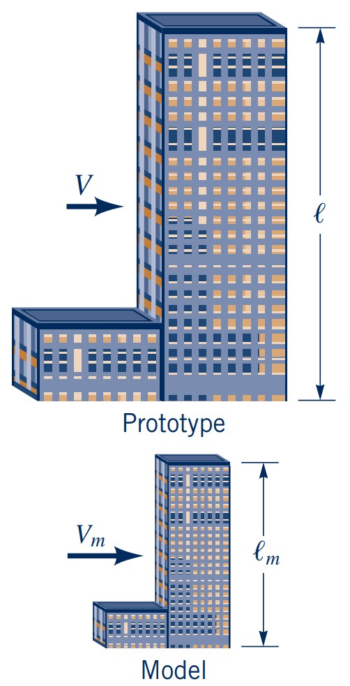 \( \text{Re} = \dfrac{V l}{\nu}, \) \(~~~~~\) \( \text{Fr} = \dfrac{V}{\sqrt{g L}}, \)