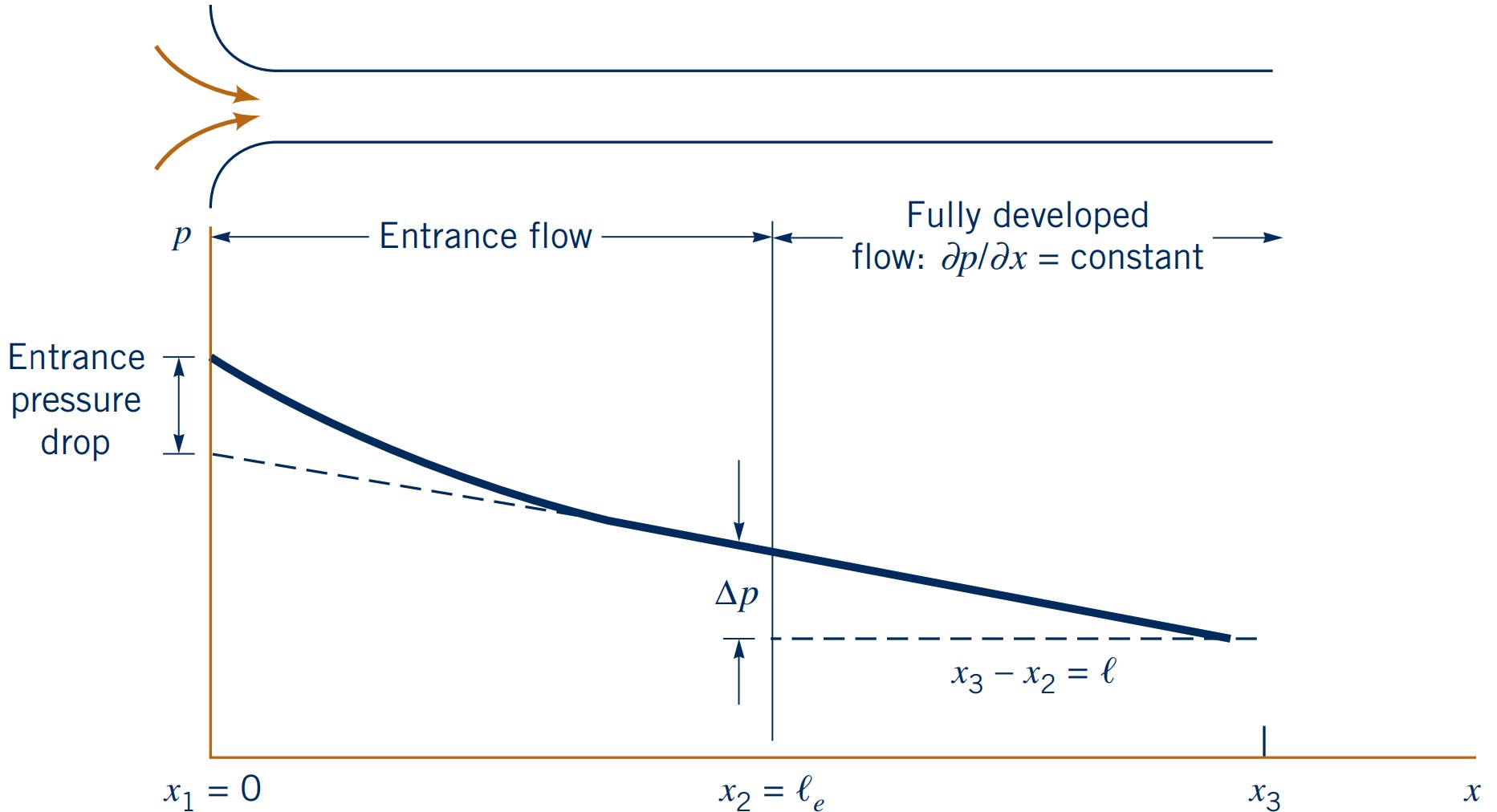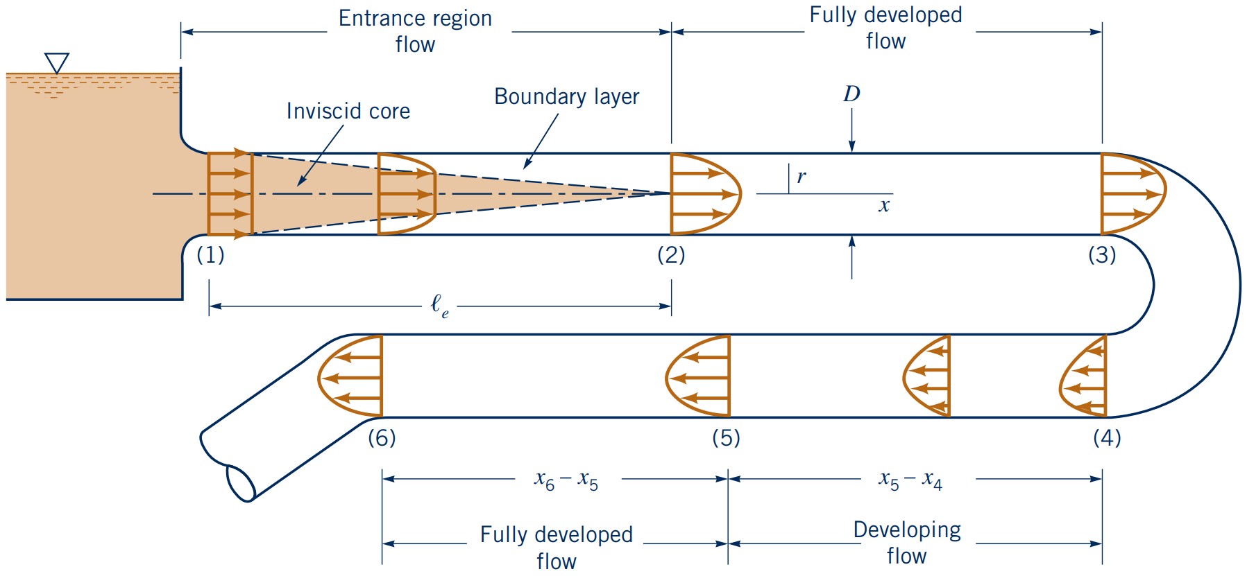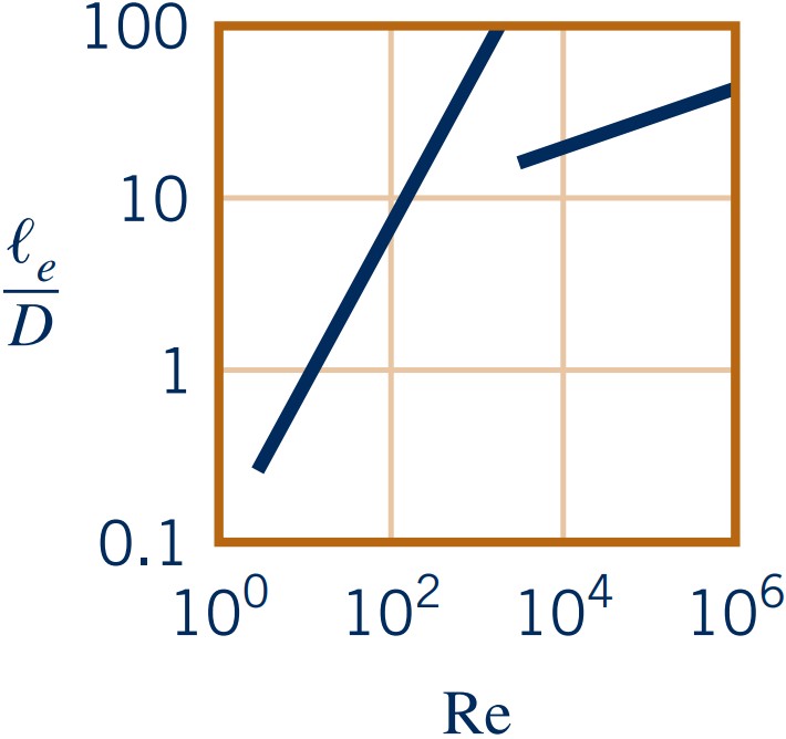 Entrance length $l_e$ depends on Reynolds number: