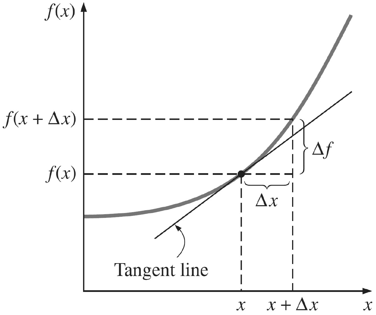 \( \frac{\text{d}f(x)}{\text{d}x} \) \(\approx \frac{f(x+\Delta x)-f(x)}{\Delta x}\)